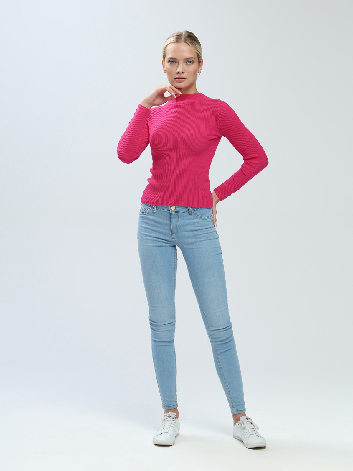 During the shooting process the monitor displays entirely edited content material ready for use on various online platforms. After the integration of the Digital Asset Management System (DAM) of photo production with the client's IT system, the content is automatically published in the product card of their online store.