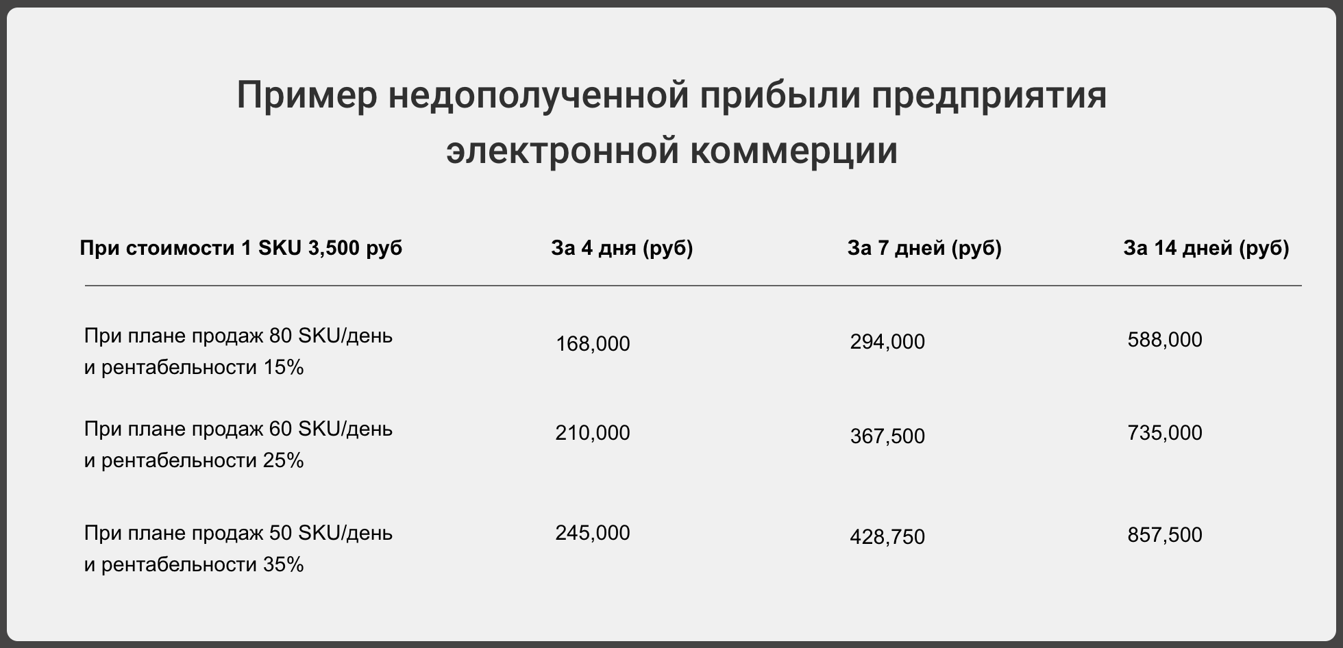 Lost profit in numbers