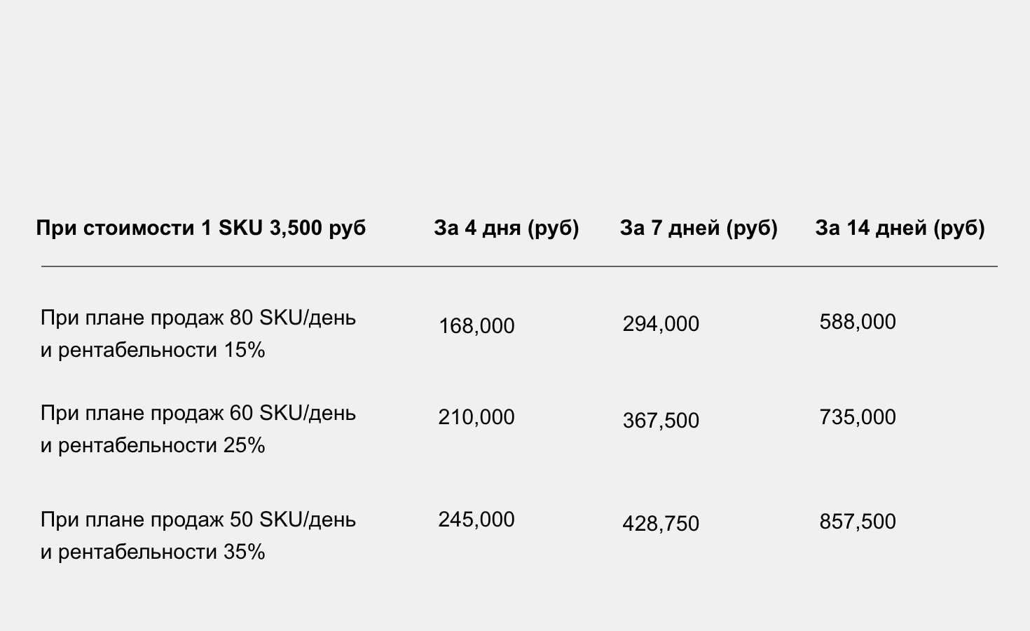 With a sales plan of 10 SKU/day and a profitability of 30%