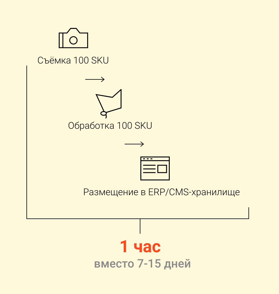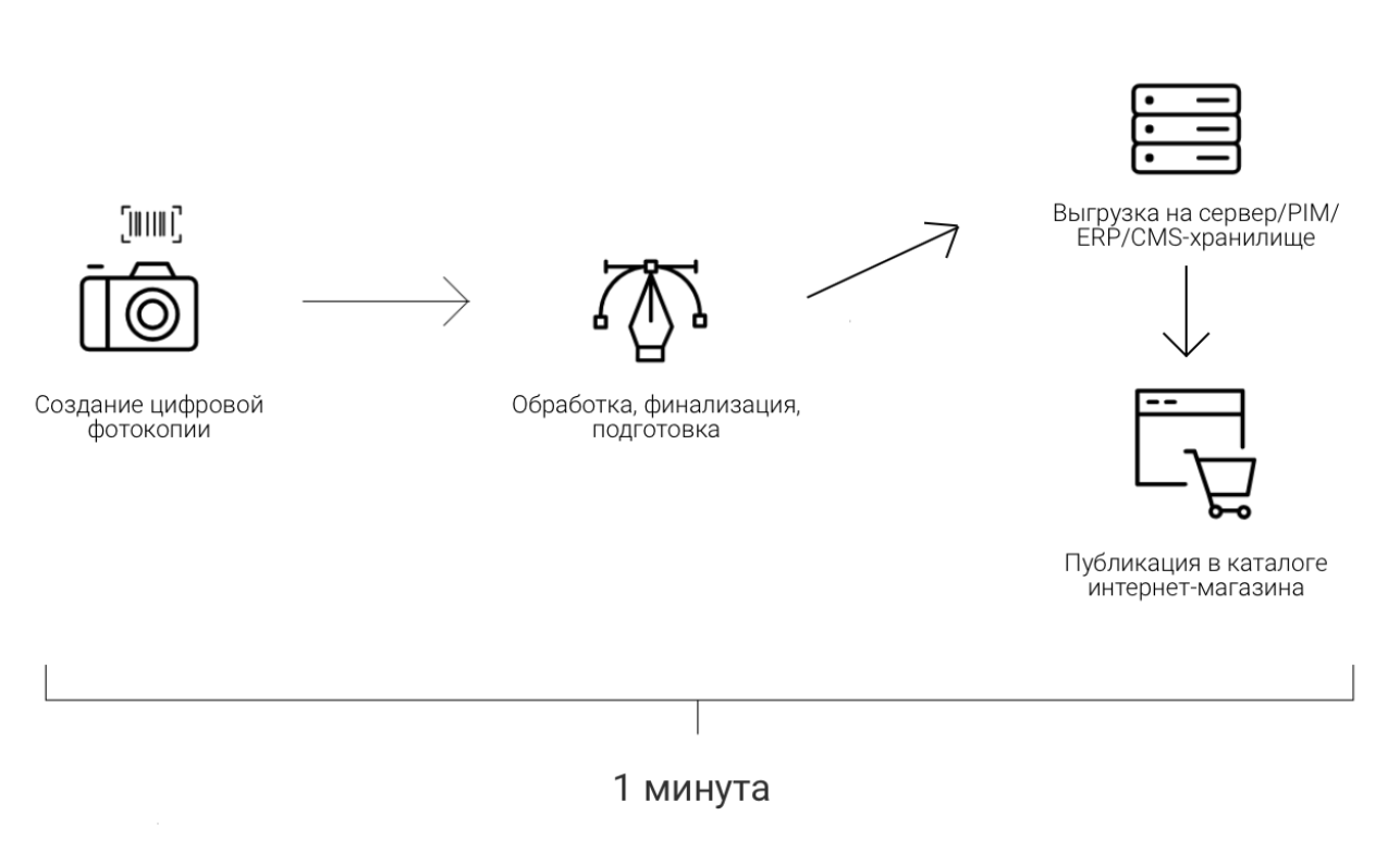 ... from the first operating of a camera shutter (the start of SKU shooting) till the posting of a digital SKU photocopy in DAM/ERP/CMS storage of photos.